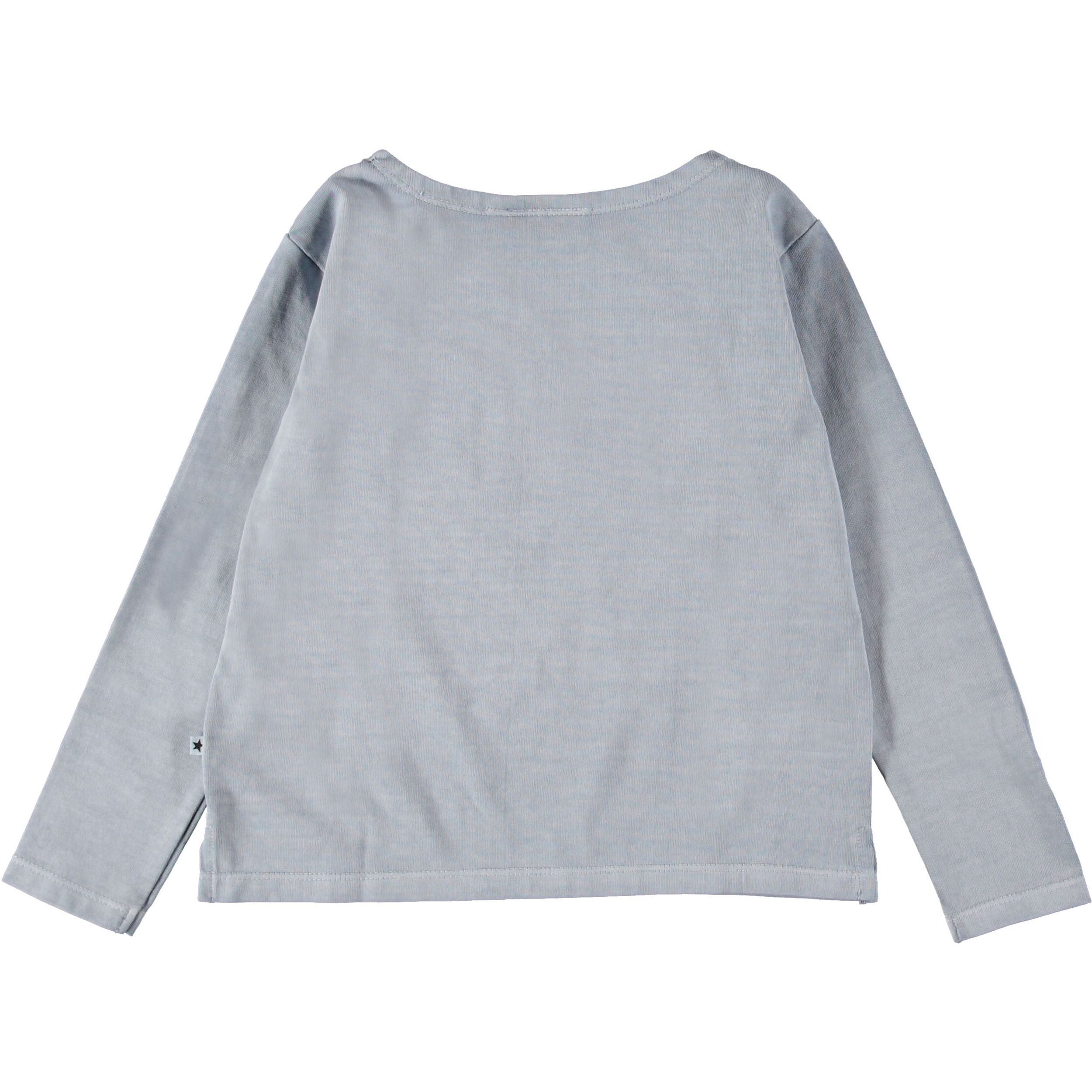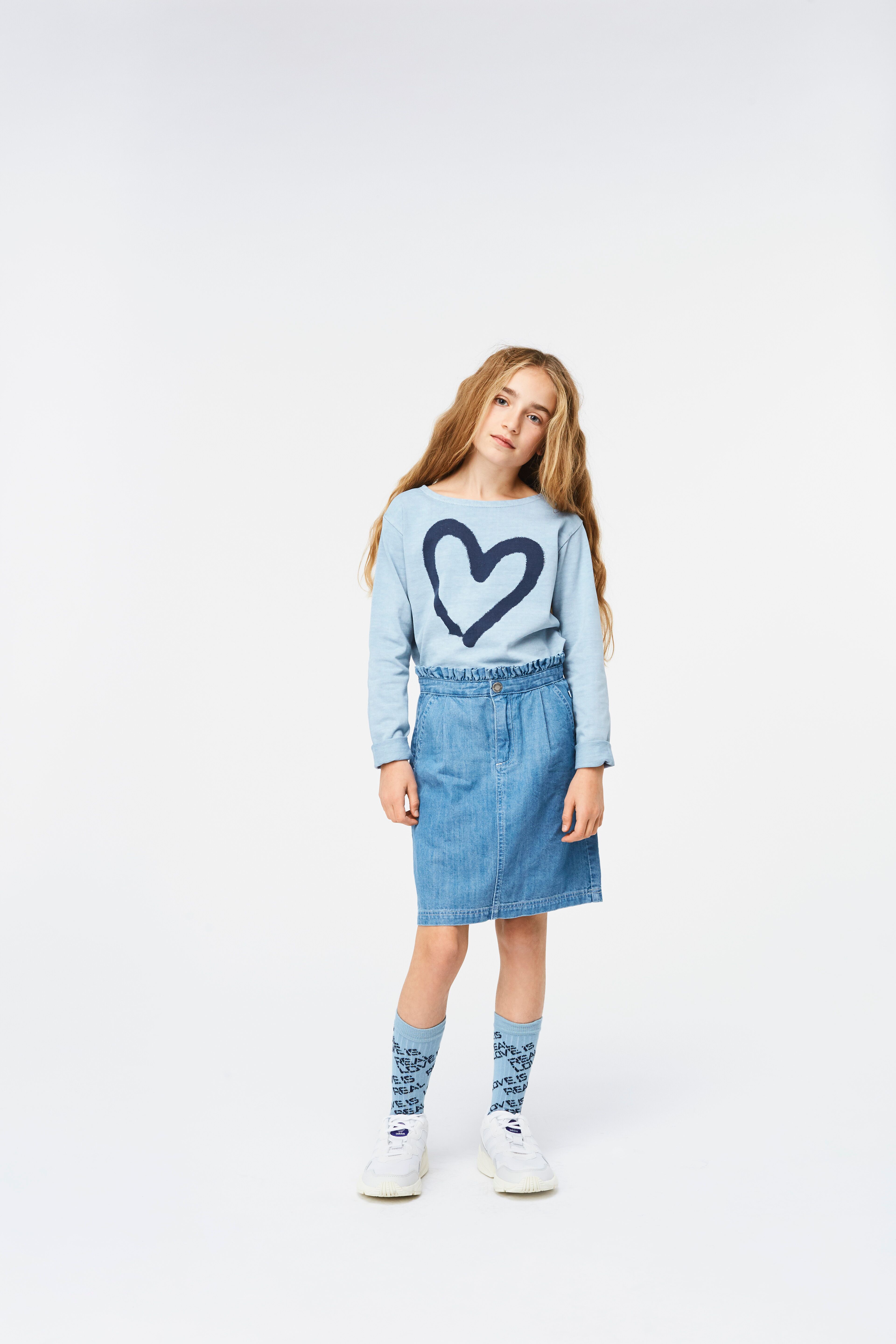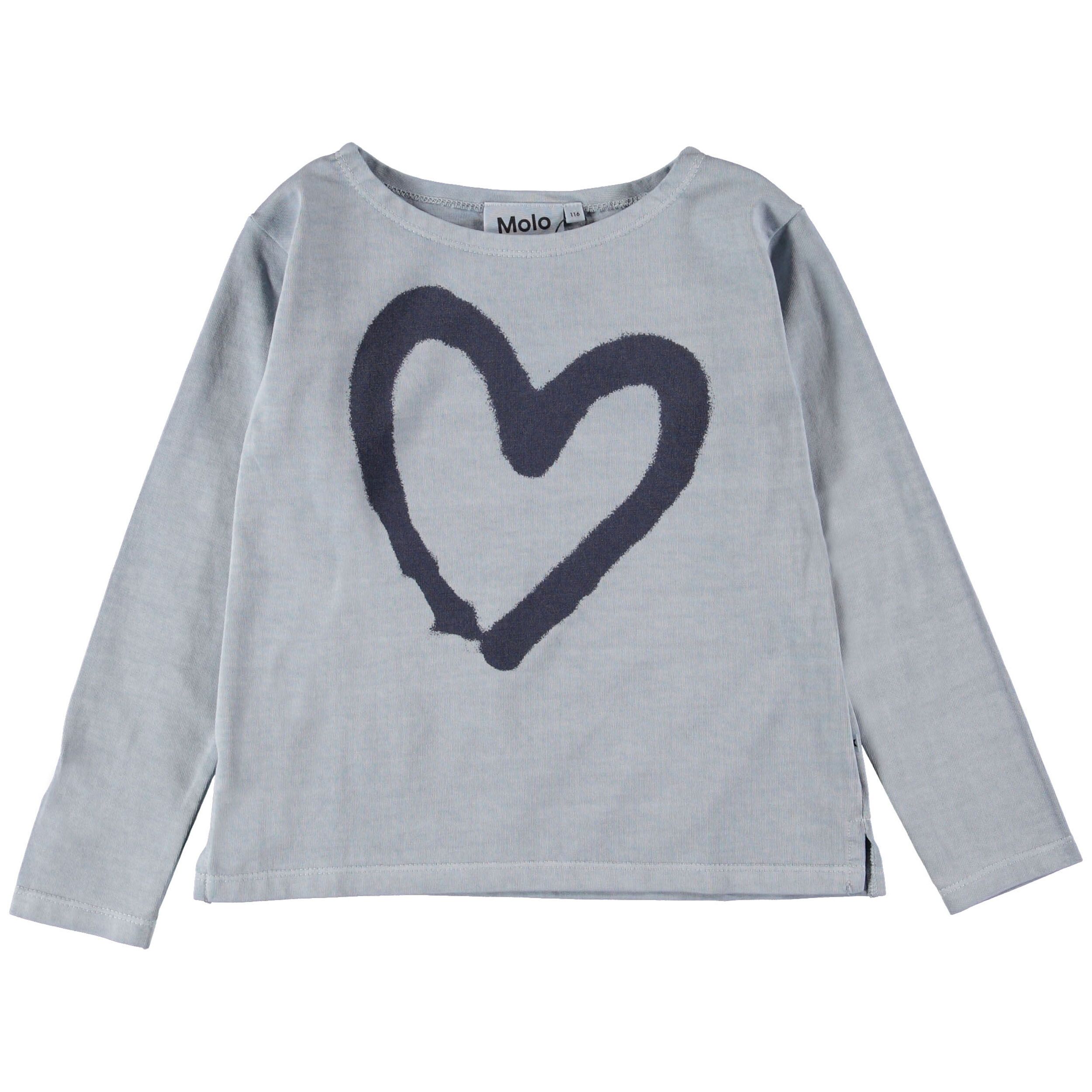 Shirt ramilah misty blue. Blauw shirt met lange mouwen, shirt heeft print van hart op voorpand. Splitjes onderaan het shirt.
